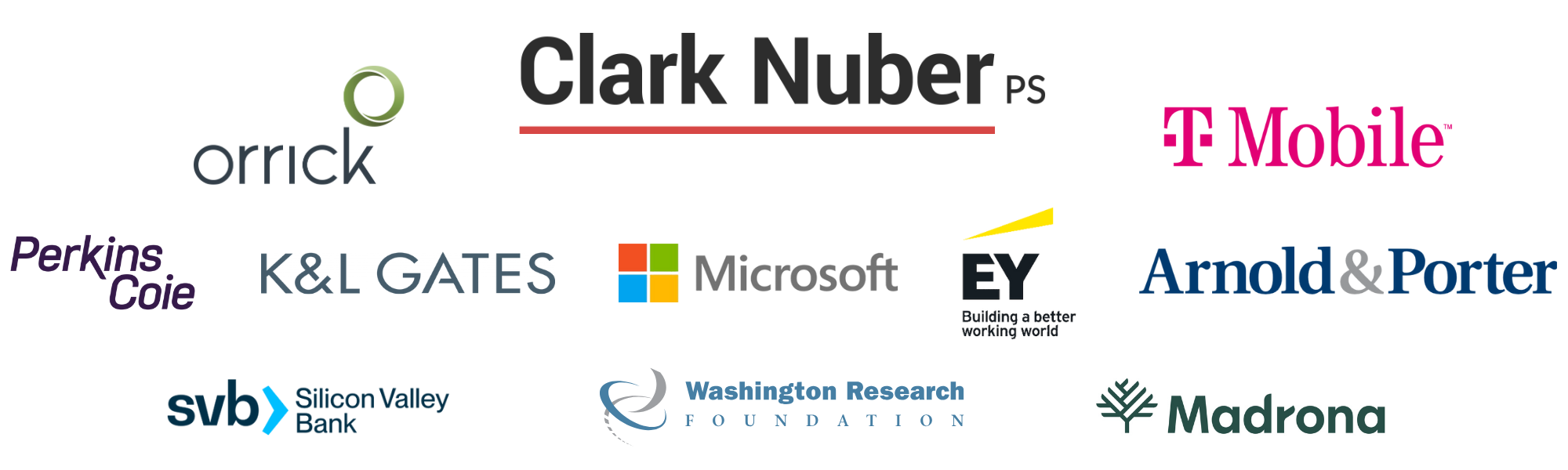 K&L Gates 〰️ EY 〰️ SVB Bank 〰️ Perkins Coie 〰️ Microsoft 〰️ Orrick 〰️ Clark Nuber 〰️ T-Mobile 〰️ Arnold & Porter 〰️ Madrona 〰️ WRF 〰️